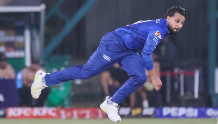 Islamabad United pacer Faheem Ashraf bowls during the Pakistan Super League (PSL) 11 match against Hyderabad Kingsmen at the National Bank Stadium in Karachi on April 12, 2026. – PSL