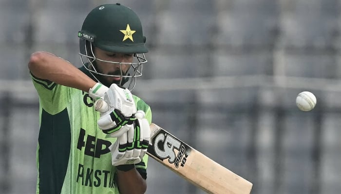 Pakistan’s Shamil Hussain plays a shot during the first ODI against Pakistan at the Sher-e-Bangla National Stadium in Mirpur on March 11, 2026. – AFP