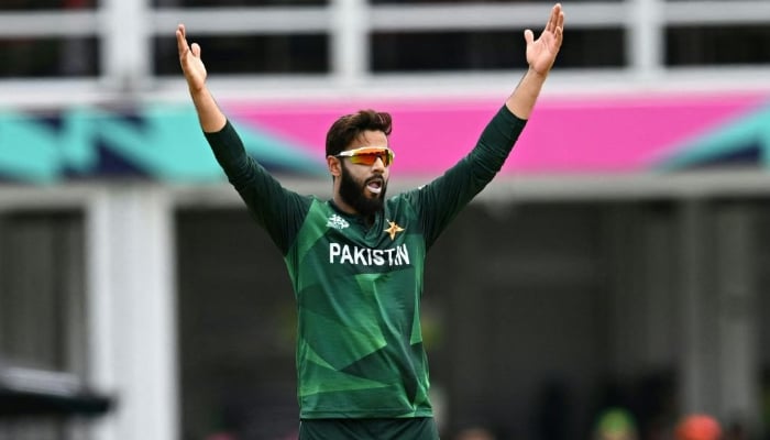 Pakistan’s Imad Wasim celebrates after being dismissed by Ireland’s Gareth Delaney during the ICC Men’s Twenty20 World Cup 2024 Group A cricket match between Pakistan and Ireland at the Central Broward Park & ​​Broward County Stadium in Lauderhill, Florida on June 16. – AFP246