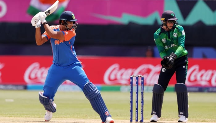 India’s Shivam Dube (left) plays a shot during the ICC Men’s T20 World Cup 2024 match against Ireland at the Nassau County International Cricket Stadium on June 5, 2024 in New York. – AFP
