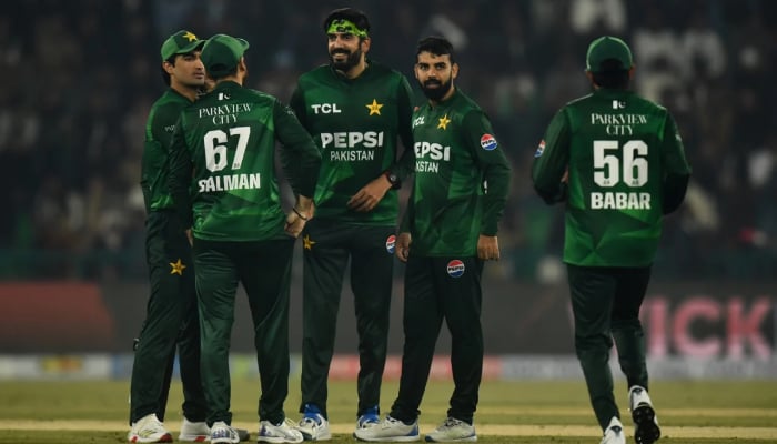 Pakistan players celebrate the wicket of Australia’s Cooper Connolly during the T20 International match between Pakistan and Australia at Gaddafi Stadium on January 31, 2026 in Lahore, Pakistan. – AFP