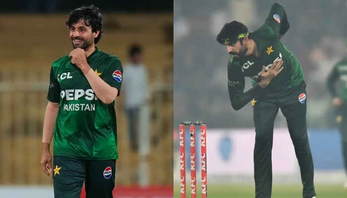 Pictured in the photo gallery are Pakistani spinners Abrar Ahmed (left) and Usman Tariq. – ECB/AFP