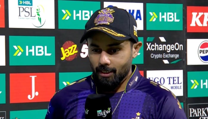 Quetta Gladiators captain Saud Shakeel speaks during the post-match presentation following their Pakistan Super League (PSL) 11 match loss against Islamabad United at Gaddafi Stadium in Lahore on April 2, 2026. — Screengrab/Livestream