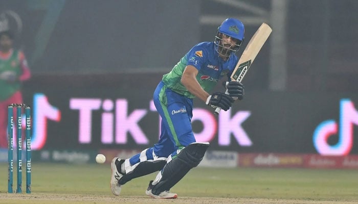 Shaun Masood of Multan Sultans takes a shot during the PSL 7 match against Islamabad United at the National Bank Stadium in Karachi on February 1, 2022. — PSL