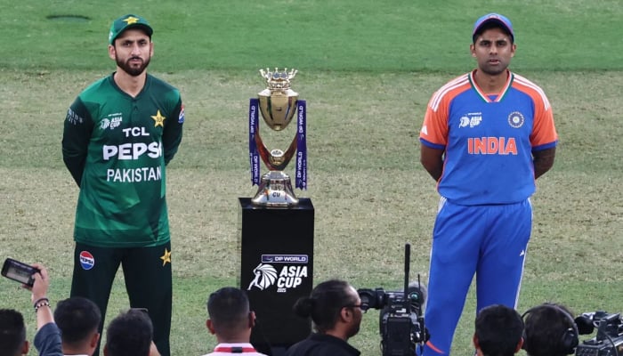 Pakistan captain Salman Ali Agha (left) and India’s Suryakumar Yadav pose for a photo ahead of the toss for the ACC Men’s Asia Cup 2025 final at the Dubai International Cricket Stadium on September 28, 2025 in Dubai. – AFP