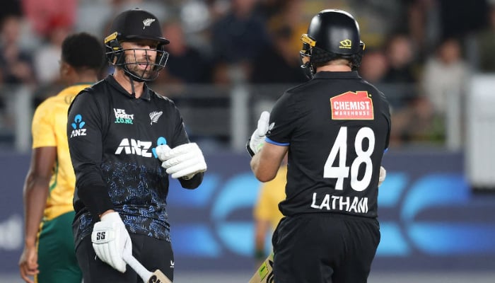 Opening with Devon Conway, Latham scored 96, lifting his bat for his fifth T20I half-century. Conway fell to Maharaj after scoring 39 off 26 balls with 4 fours and 2 sixes.